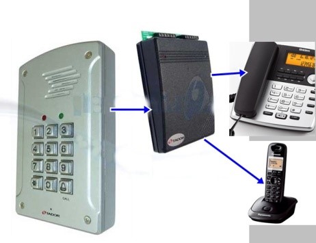 מערכת אינטרקום המתחברת לקו הטלפון ביתי, וכוללת פנל חיצוני ומתאם טל/אינט' ל-2 דלתות, (המאפשר הוספת פנל לדלת פנימית), בצורה זו אין מכשור בבית ואין חיווט, החיבור נעשה בארון התקשורת , ובכך תמה ההתקנה.